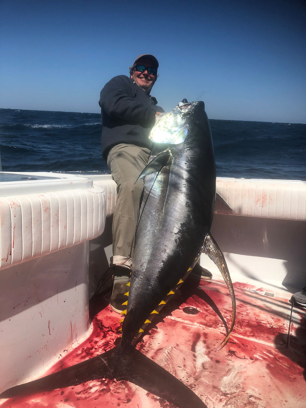 The first few hours were a grind. They hooked several respectable yellowfin in the 40- to 60-pound range, their reels screaming as the fish made blistering runs. They landed one after a 20-minute battle, his arms burning from the strain. "These things fight like demons!" one exclaimed, wiping sweat from his brow. But the group knew they were after something bigger. As the sun climbed higher, the wind picked up, whipping the waves into whitecaps with "spaced" swells.